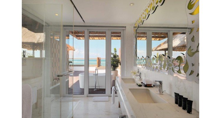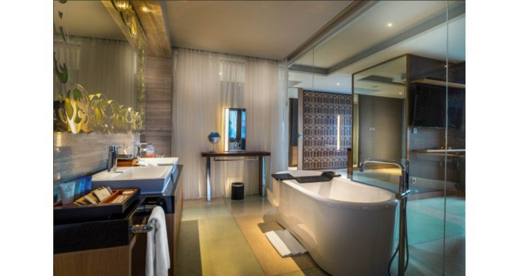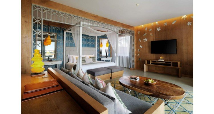 Experience the pinnacle of Balinese luxury in our signature suite. This expansive space features a beautifully designed bedroom with a canopy bed, a dedicated living area decorated with local artwork, and a spectacular marble bathroom. The private rooftop terrace is your personal oasis, complete with sun loungers, an outdoor soaking tub, and a traditional thatched 'Bale' pavilion—perfect for enjoying the sunset and the sound of the ocean.
