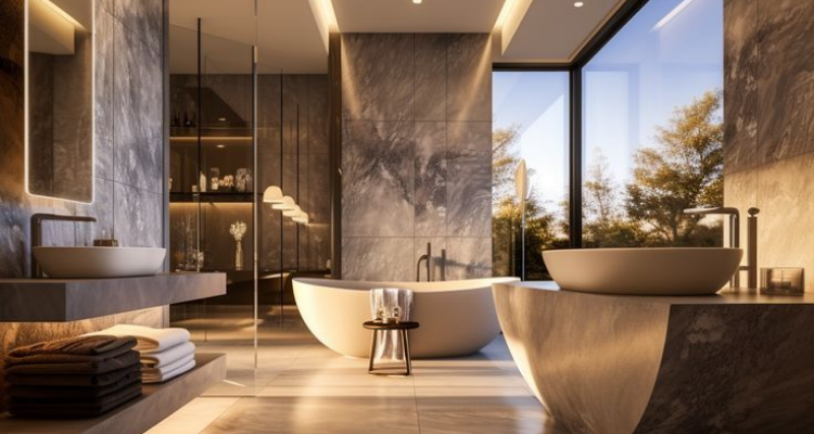 Spacious with modern amenities and an ocean view.