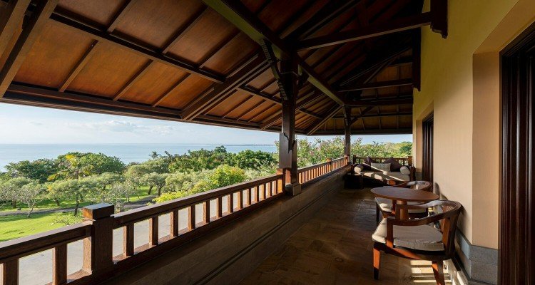 The ultimate Balinese luxury escape. This expansive, 98-square-meter suite offers uninterrupted ocean views and a peaceful, residential feel. It features a private master bedroom, a dedicated living room for relaxation, and a luxurious open-concept bathroom with a stand-alone soaking tub. The expansive outdoor veranda is furnished for dining and lounging while you enjoy the sunset.
